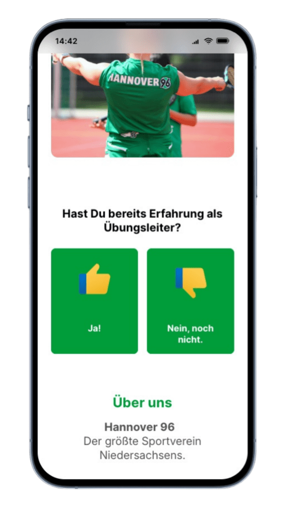 Bei den Übungsleitern prüften wir durch gezielte Fragen im Funnel automatisiert die bisherigen Erfahrungen, sowie das Vorhandensein notwendiger Lizenzen ab.